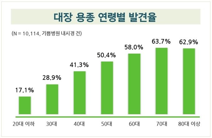 Áö±Ý±îÁö ±â»Ýº´¿ø¿¡¼ ´ëÀå³»½Ã°æ °Ë»ç¸¦ ¹ÞÀº »ç¶÷ÀÇ 47.6%¿¡¼ ¿ëÁ¾ÀÌ ¹ß°ßµÆ´Ù. ÀÌ´Â ±¹³» 7°³ »ó±ÞÁ¾ÇÕº´¿øÀÇ Æò±Õ ¹ß°ßÀ² 35.9%¿Í ºñ±³ÇÒ ¶§ ¸Å¿ì ³ôÀº ¼öÄ¡´Ù.