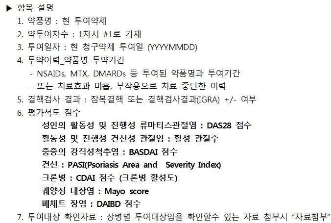 Æò°¡Ã´µµ Á¡¼ö´Â ¡ã¼ºÀÎÀÇ È°µ¿¼º ¹× ÁøÇ༺ ·ù¸¶Æ¼½º°üÀý¿° DAS28 Á¡¼ö ¡ãȰµ¿¼º ¹× ÁøÇ༺ °Ç¼±¼º °üÀý¿° Ȱ¼º °üÀý¼ö ¡ãÁßÁõÀÇ °Á÷¼ºÃ´Ãß¿° BASDAI Á¡¼ö ¡ã°Ç¼± PASI(Psoriasis Area and Severity Index) ¡ãÅ©·Ðº´ : CDAI Á¡¼ö µîÀ» ¹Ý¿µÇØ¾ß ÇÑ´Ù.