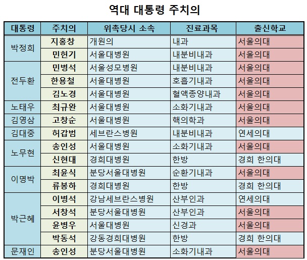 ÀÇ»ç·Î ÇÑÆò»ý »ì¸é¼ ´ëÅë·É ÁÖÄ¡Àǰ¡ µÈ´Ù´Â °ÍÀº ´ë´ÜÈ÷ ¸í¿¹·Î¿î ÀÏ Áß Çϳª´Ù. ±×·±µ¥ µÎ ¸íÀÇ ´ëÅë·ÉÀ» ¸ð½Å ÁÖÄ¡Àǰ¡ ÀÖ´Ù. ±× ÁÖÀΰøÀº ¹Ù·Î ºÐ´ç¼¿ï´ëº´¿ø ¼ÛÀμº ±³¼ö[»çÁø]´Ù.