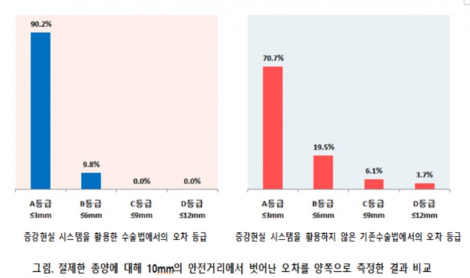 ±âÁ¸ ¼ö¼ú¹ý¿¡¼´Â Aµî±ÞÀÌ 70.7%, Bµî±ÞÀÌ 19.5%, Cµî±ÞÀÎ 9mmÀÌÇÏÀÇ ¿ÀÂ÷°¡ 6.1%¿´À¸¸ç, ³ª¸ÓÁö Dµî±ÞÀÎ 3.7%¿¡¼´Â ¾ÈÀü°Å¸®¸¦ È®º¸ÇÏÁö ¸øÇØ Á¾¾çÀ» ³²°ÜµÎ°í ÀýÁ¦Ç߰ųª 9mm¸¦ ³Ñ´Â ¿ÀÂ÷¸¦ º¸À̱â±îÁö Çß´Ù. [¾Æ·¡ ±×·¡ÇÁ ÂüÁ¶]