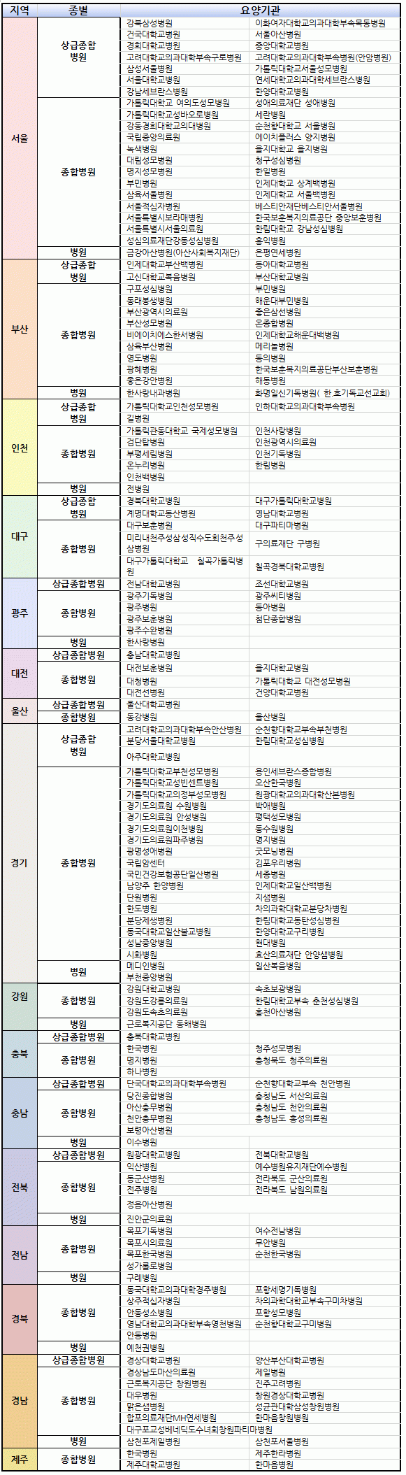 4µî±Þ ±â°üÀº ¡ã±¤ÁÖÇѱ¹º´¿ø ¡ã´Ùº¸½ºº´¿ø ¡ãÁ¦Ãµ¼¿ïº´¿ø µî 128°÷ÀÌ, 5µî±Þ ±â°üÀº ¡ã±èÇØº¹À½º´¿ø ¡ã¼øÃµÁ¦ÀϺ´¿ø ¡ãÇØ³²º´¿ø µî 34°÷ÀÌ µî±Þ ³·Àº ±â°üÀ¸·Î ±â·ÏµÆ´Ù.