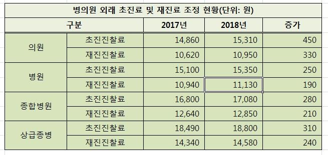 »ó±ÞÁ¾ÇÕº´¿øÀÇ ÃÊÁø·á´Â 1¸¸8800¿ø, ÀçÁø·á´Â 1¸¸4580¿øÀ¸·Î Á¤ÇØÁ³´Ù. ¿ÃÇØ ÃÊÁø·á 1¸¸8490¿ø¿¡¼ 310¿ø Áõ°¡Çϰí ÀçÁø·á´Â 1¸¸4340¿ø¿¡¼ 240¿ø ÀλóµÈ´Ù.