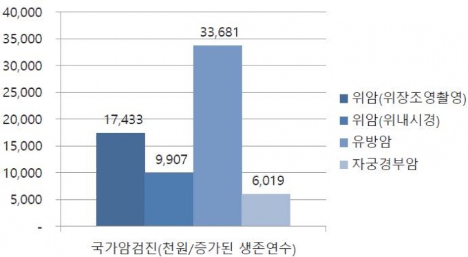 À§¾ÏÀÇ °æ¿ì´Â À§ÀåÁ¶¿µÃÔ¿µ ´ë½Å À§³»½Ã°æ °Ë»ç¸¦ ¹Þ´Â°Ô Çö¸íÇÏ´Ù´Â °ÍÀ¸·Î ÇØ¼®µÆÀ¸¸ç, ÀڱðæºÎ¾ÏÀº ºñ¿ëÈ¿°ú°¡ Ÿ ¾Ïº¸´Ù ºñ¿ëÈ¿°ú°¡ ¶Ù¾î³ª´Ù°í º¼ ¼ö ÀÖ´Ù´Â °á·ÐÀÌ´Ù.
