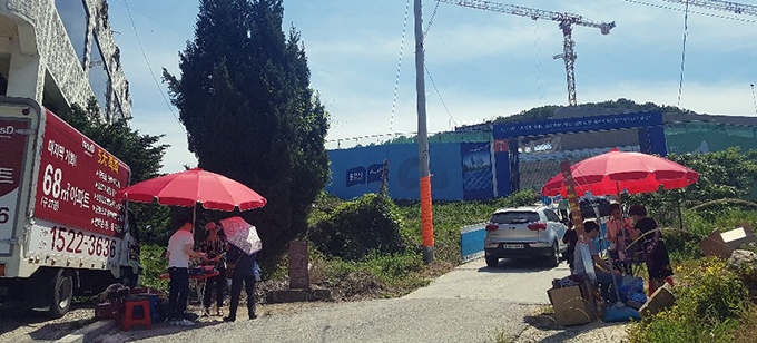 ¿ëÀε¿¹é¼¼ºê¶õ½ºº´¿ø Àα٠»ó°¡´Â º´¿ø ±â°ø½Ä¿¡ ¸ÂÃç ºÐ¾çÀ» ½ÃÀÛÇßÀ¸¸ç, ±â°ø½Ä ´çÀÏ¿¡´Â Àα٠¾ÆÆÄÆ® ºÐ¾çÀ» È«º¸Çϱâ À§ÇÑ À̵¿½Ä È«º¸°üÀÌ °ø»çÀå ÀÔ±¸¿¡ ÁøÀ» Ä¡±âµµ ÇÏ´Â µî ÀÏ´ë ºÎµ¿»ê ½ÃÀåÀÌ µé½âÀ̰í ÀÖ´Ù. [»çÁø]