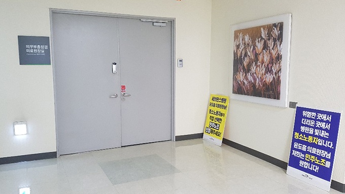 û¼Ò³ëµ¿ÀÚµéÀº “º´¿ø°ú ¿ë¿ªÈ¸»ç°¡ ¸ðÀÇÇϰí ÁÖ°í¹Þ´ø ¾÷¹«ÀÏÁö¿Í ¹ÝÀåµéÀÇ Å»Åð Çù¹Ú µî º´¿ø¿¡¼ ¹ú¾îÁ³´ø ¼ö¸¹Àº ºÎ´ç³ëµ¿ÇàÀ§¿¡ ´ëÇØ »ç°úÇϰí Àç¹ß¹æÁöÃ¥À» ¸¶·ÃÇ϶ó”°í ÁÖÀåÇß´Ù.