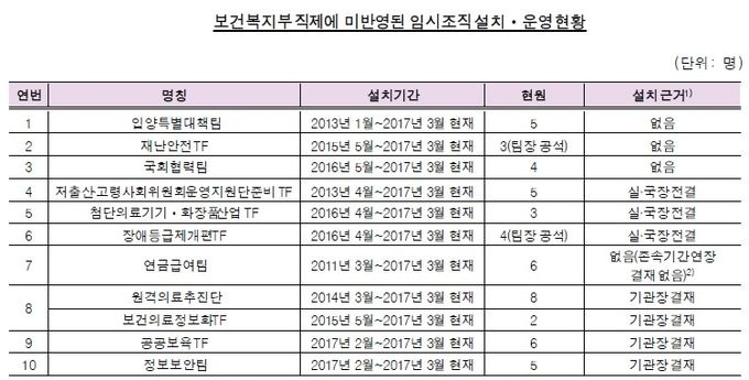 °¨»ç¿øÀº º¹ÁöºÎÀå°ü¿¡°Ô ¼³Ä¡ ±Ù°Å°¡ ¾ø°Å³ª ±ÔÁ¤À» À§¹ÝÇÑ ÀÓ½ÃÁ¶Á÷À» ÅëÆóÇÕÇϰí, »ó¼³Á¶Á÷ ¿î¿µÀÌ ÇÊ¿äÇÑ °æ¿ì ÇàÀںο¡ Á¤½ÄÀ¸·Î Á¤¿øÀ» ¿äûÇÏ´Â µî °³¼± ¹æ¾ÈÀ» ¸¶·ÃÇ϶ó°í Å뺸Çß´Ù.