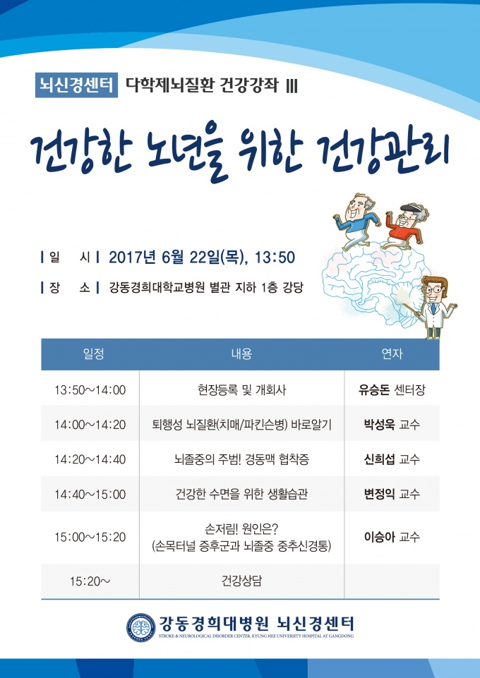À̳¯ °Á¿¡¼´Â ¡ãÅðÇ༺ ³úÁúȯ(Ä¡¸Å/ÆÄŲ½¼º´) ¹Ù·Î¾Ë±â(Çѹ泻°ú ¹Ú¼º¿í ±³¼ö) ¡ã³úÁ¹ÁßÀÇ ÁÖ¹ü! °æµ¿¸Æ ÇùÂøÁõ(½Å°æ¿Ü°ú ½ÅÈñ¼· ±³¼ö) ¡ã°Ç°ÇÑ ¼ö¸éÀ» À§ÇÑ »ýȰ½À°ü(½Å°æ°ú º¯Á¤ÀÍ ±³¼ö) ¡ã¼ÕÀú¸²! ¿øÀÎÀº?(ÀçȰÀÇÇаú ÀÌ½Â¾Æ ±³¼ö) µîÀÇ ÁÖÁ¦·Î °¿¬°ú ÁúÀÇÀÀ´ä ½Ã°£ÀÌ ¸¶·ÃµÈ´Ù. |