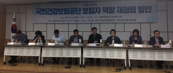 °°Àº ³¯ ±¹È¸¿¡¼µµ ‘°Ç°º¸Àå 40Áֳ⠱â³ä’ Åä·Ðȸ°¡ ÁøÇàµÆ´Ù. ÁÖÁ¦´Â '±¹¹Î°Ç°º¸Çè°ø´Ü, º¸ÇèÀÚ ¿ªÇÒ ÀçÁ¤¸³ ¹æ¾È'À¸·Î ¼³Á¤µÆ°í À̰÷¿¡¼´Â ÈÇÕÀÌ ¾Æ´Ñ ‘¿µ¿ª ħ¹ü¿¡ ´ëÇÑ ºÒÄè°¨’ÀÌ ÈµÎ·Î ¶°¿Ã¶ú´Ù.