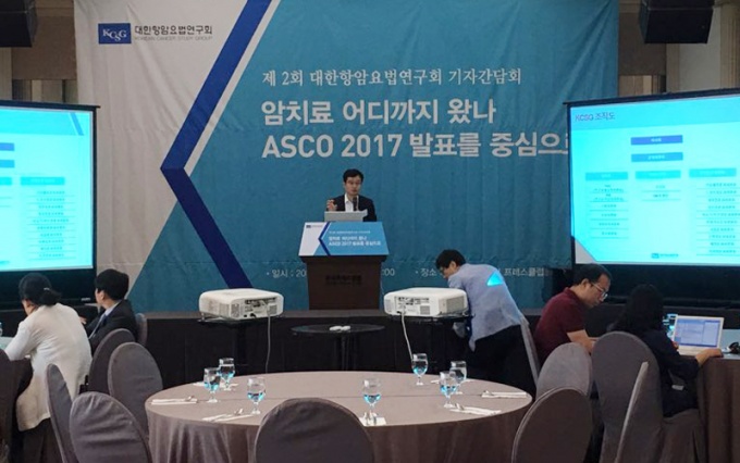 ´ëÇÑÇ׾Ͽä¹ý¿¬±¸È¸(ȸÀå °ÁøÇü)´Â 21ÀÏ ±âÀÚ°£´ãȸ¸¦ °®°í ASCO¿¡¼ ¹ßÇ¥µÈ ¾Ï Ä¡·á °ü·Ã ÁÖ¿ä ÀÓ»ó °á°ú¸¦ ÀçÁ¶¸í Çß´Ù.[»çÁø]