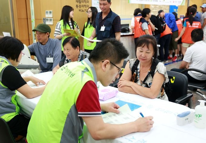 À̹ø °ËÁø¿¡´Â Á¤Çü¿Ü°ú, ³»°ú, »êºÎÀΰú µî 3¸íÀÇ Àü¹®ÀǸ¦ Æ÷ÇÔÇØ 30¿© ¸íÀÇ Á÷¿øµéÀÌ Âü¿©ÇßÀ¸¸ç, ÀÌÁÖ¹ÎÀ» ´ë»óÀ¸·Î Ç÷¾×°Ë»ç, ¼Òº¯°Ë»ç, ½ÉÀüµµ °Ë»ç, ºÎÀΰú °Ë»ç µîÀ» ½ÃÇàÇß´Ù.