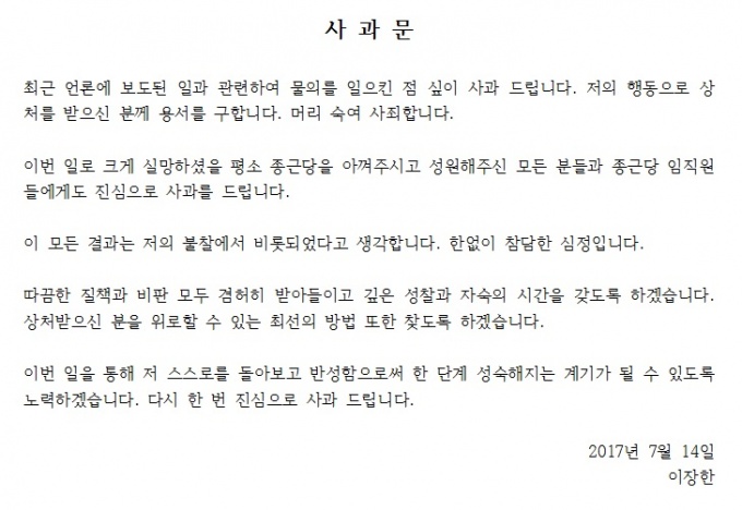 »ç°ú¹®À» ÅëÇØ ÀÌÀåÇÑ È¸ÀåÀº “ÀÌ ¸ðµç °á°ú´Â ÀúÀÇ ºÒÂû¿¡¼ ºñ·ÔµÆ´Ù°í »ý°¢ÇÑ´Ù”¸ç “ÇѾøÀÌ Âü´ãÇÑ ½ÉÁ¤”À̶ó°í ¸»Çß´Ù.