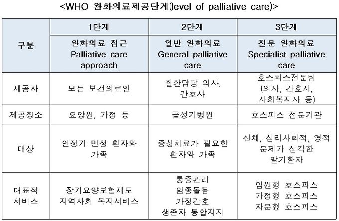 ¸»±âȯÀÚÀÇ ¸¶Áö¸· ³²Àº »îÀ» Æí¾ÈÇÏ°Ô ¸¶¹«¸®ÇÒ ¼ö ÀÖµµ·Ï ÇØÁִ ȣ½ºÇǽº(Hospice)°¡ ´ëÆø È®´ëµÈ´Ù. ¼ºñ½º ´ë»óÀÌ ¸»±â ¾ÏȯÀÚ¿¡¼ ÈÄõ¼º¸é¿ª°áÇÌÁõ(AIDS), ¸¸¼ºÆó¼â¼ºÈ£Èí±âÁúȯ(COPD), ¸¸¼º°£°æÈ ȯÀÚ¿¡°Ô±îÁö ´Ã¾î³´Ù. ¼ºñ½º Á¾·ù ¿ª½Ã ±âÁ¸ ÀÔ¿øÇü¿¡¼ Å»ÇÇÇØ ÀÚ¹®Çü, °¡Á¤Çü±îÁö ´Ù¾çÇØÁø´Ù. ȯÀÚ »óųª Ã³ÇØÁø ȯ°æ¿¡ µû¶ó ÇÊ¿äÇÑ ÇüÅÂÀÇ È£½ºÇǽº¸¦ ¹ÞÀ» ¼ö ÀÖµµ·Ï ÇÑ´Ù´Â ÃëÁö´Ù. ÀÓÁ¾ÀÌ ÀÓ¹ÚÇÑ È¯Àڵ鿡°Ô Æí¾ÈÇÏ°íµµ Àΰ£´ä°Ô Á×À½À» ¸ÂÀ» ¼ö ÀÖµµ·Ï Çϴ ȣ½ºÇǽº°¡ ¼¼°èÀû Ãß¼¼ÀÎ ¸¸Å Á¤ºÎ´Â ¾ÕÀ¸·Î ±× Àû¿ë ¹üÁÖ¸¦ Á¡Â÷ È®´ëÇØ ³ª°£´Ù´Â ¹æÄ§ÀÌ´Ù. 3ÀÏ Á¤ºÎ°¡ ³»³õÀº û»çÁø¿¡´Â ÇâÈÄ ±¹³» È£½ºÇǽº Á¦µµ º¯È¿¡ ´ëÇÑ È®°íÇÑ ÀÇÁö°¡ ´ã°Ü ÀÖ´Ù.