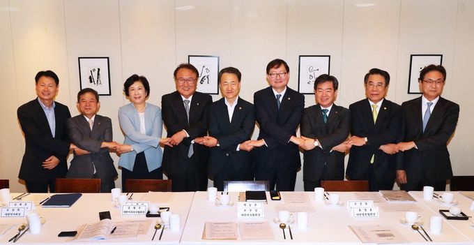 º¸°Çº¹ÁöºÎ ¹Ú´ÉÈÄ Àå°üÀÌ ÃëÀÓ ÈÄ Ã³À½À¸·Î º¸°ÇÀÇ·á´ÜüÀåµé°ú ȸµ¿Çß´Ù. 8ÀÏ ¼¿ï ÇÑ À½½ÄÁ¡¿¡¼ ÁøÇàµÈ °£´ãȸ¿¡´Â ´ëÇÑÀÇ»çÇùȸ Ãß¹«Áø ȸÀå, ´ëÇѺ´¿øÇùȸ È«Á¤¿ë ȸÀå, ´ëÇÑÄ¡°úÀÇ»çÇùȸ ±èö¼ö ȸÀå, ´ëÇÑÇÑÀÇ»çÇùȸ ±èÇÊ°Ç È¸Àå, ´ëÇѾà»çȸ Á¶ÂùÈÖ È¸Àå, ´ëÇѰ£È£Çùȸ ±è¿Á¼ö ȸÀå µîÀÌ Âü¼®Çß´Ù. ÀÌ ÀÚ¸®¿¡¼ ´ÜüÀåµéÀº °¢ Çùȸ°¡ ¾È°í ÀÖ´Â Çö¾ÈµéÀ» º¹ÁöºÎ¿¡ Àü´ÞÇß´Ù.