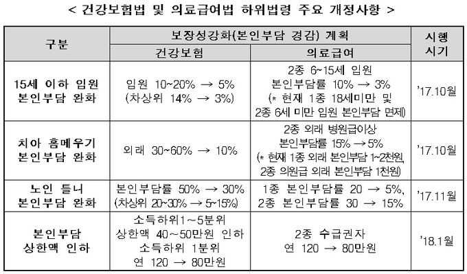 °³Á¤¾ÈÀÇ ÁÖ¿ä ³»¿ëÀ» »ìÆìº¸¸é ¸ÕÀú 15¼¼ ÀÌÇÏ ÀÔ¿øÁø·áºñ º»ÀκδãÀ²ÀÌ ±âÁ¸ 20%¿¡¼ 5%·Î ³·¾ÆÁø´Ù. Àû¿ë ´ë»óµµ ±âÁ¸ 7¼¼¿¡¼ 15¼¼·Î È®´ëµÆ´Ù.
