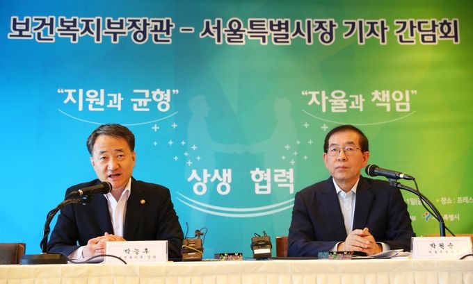 ¹Ú´ÉÈÄ º¸°Çº¹ÁöºÎÀå°ü°ú ¹Ú¿ø¼ø ¼¿ï½ÃÀåÀº 1ÀÏ Çѱ¹ÇÁ·¹½º¼¾ÅÍ¿¡¼ ±âÀÚ°£´ãȸ¸¦ ¿°í Áß¾ÓÁ¤ºÎ¿Í ÁöÀÚüÀÇ »ó»ý‧Çù·ÂÀ» ´ÙÁüÇß´Ù.