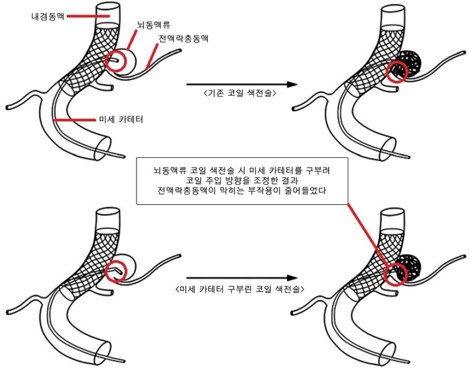 ¼´ëö ±³¼ö´Â "Àü¸Æ¶ôÃѵ¿¸Æ ³úµ¿¸Æ·ù´Â ÄÚÀÏ»öÀü¼ú ÈÄ ³úµ¿¸Æ·ù·ÎºÎÅÍ ºüÁ®³ª¿À´Â ÄÚÀÏ¿¡ ÀÇÇØ Àü¸Æ¶ôÃѵ¿¸ÆÀÌ ¸·È÷±â ½¬¿ö Ä¡·á°¡ ¾î·Á¿ü´Ù"¸ç "¹Ì¼¼ Ä«Å×Å͸¦ ±¸ºÎ·Á Àü¸Æ¶ôÃѵ¿¸Æ¿¡¼ ¸Õ ¹æÇâÀ¸·Î ³úµ¿¸Æ·ù¿¡ ÄÚÀÏÀ» ÁÖÀÔÇϸé Ä¡·á È¿°ú´Â À¯ÁöÇϸ鼵µ ºÎÀÛ¿ëÀ» ÁÙÀÏ ¼ö ÀÖ´Ù"°í ¼³¸íÇß´Ù.