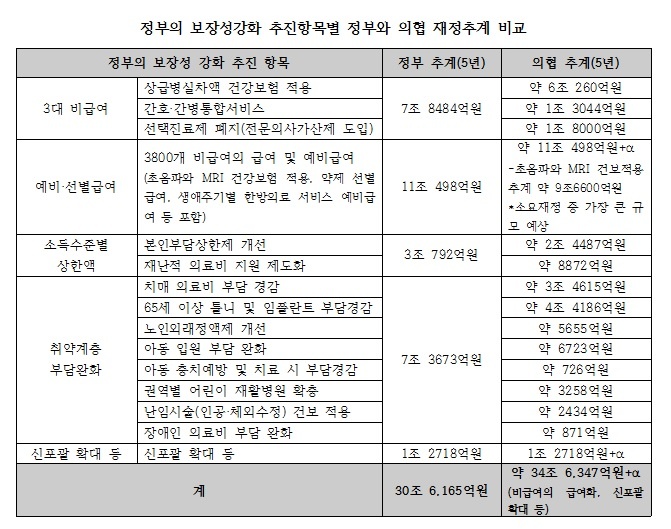 ¹®ÀçÀÎ Á¤ºÎ´Â °Ç°º¸Çè º¸À强 °È Á¤Ã¥ ºñ¿ëÀ¸·Î 30Á¶ 6õ¾ï¿øÀ̸é ÃæºÐÇÏ¸ç ¸é¹ÐÇÑ °ËÅä ³¡¿¡ Ãß»êÇÑ ±Ý¾×À̶ó°í ÀÚ½ÅÇßÁö¸¸, ÀÇ·á°è¿¡¼´Â ±×º¸´Ù ÃÖ¼Ò 4Á¶¿ø ÀÌ»óÀÌ ´õ ÇÊ¿äÇÏ´Ù´Â ÁÖÀåÀÌ Á¦±âµÆ´Ù.
