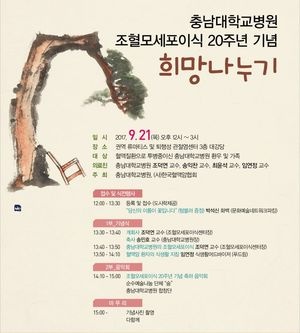 Ãæ³²´ëÇб³º´¿ø(¿øÀå ¼Û¹ÎÈ£)Àº Á¶Ç÷¸ð¼¼Æ÷ÀÌ½Ä 20ÁÖ³âÀ» ±â³äÇØ 21ÀÏ 12½ÃºÎÅÍ °üÀý¿°¼¾ÅÍ ´ë°´ç¿¡¼ ‘Èñ¸Á³ª´©±â’ Çà»ç¸¦ ÁøÇàÇÑ´Ù.