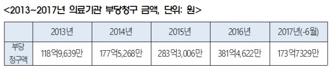 º´¿ø°ú ¿ä¾çº´¿øÀÇ ºÎ´çû±¸¾× Áõ°¡¼¼°¡ °¡ÆÄ¸£´Ù´Â °á·ÐÀÌ´Ù. º´¿øÀº 2013³â 22¾ï1679¸¸¿ø¿¡¼ 2016³â 136¾ï7259¸¸¿øÀ¸·Î 517% ±ÞÁõÇß°í, °°Àº ±â°£ ¿ä¾çº´¿øµµ 20¾ï2851¸¸¿ø¿¡¼ 54¾ï5414¸¸¿øÀ¸·Î 169% Áõ°¡Çß´Ù.