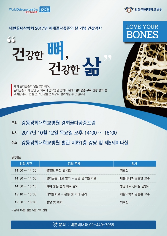 °µ¿°æÈñ´ëÇк´¿ø(¿øÀå ±è±âÅÃ)Àº ¿À´Â 10¿ù12ÀÏ(¸ñ) º°°ü ÁöÇÏ 1Ãþ °´ç¿¡¼ ‘°Ç°ÇÑ »À, °Ç°ÇÑ »î’À̶ó´Â ÁÖÁ¦·Î °Ç°°Á¸¦ °³ÃÖÇÑ´Ù.