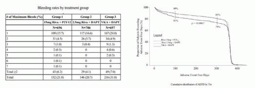 ¾Õ¼± ÀÓ»ó¿¡¼¿Í ¸¶Âù°¡Áö·Î ¿¬±¸ÁøÀº ½ºÅÙÆ® ½Ã¼úÀ» ¹ÞÀº ȯÀÚµéÀ» ¸®¹Ù·Ï»ç¹Ý 15mg°ú Ç×Ç÷¼ÒÆÇÁ¦(P2Y12 ¾ïÁ¦Á¦)(696¸í), ¸®¹Ù·Ï»ç¹Ý 2.5mg°ú ÀÌÁßÇ×Ç÷¼ÒÆÇ ¿ä¹ý(DAPT)(706¸í), ºñŸ¹ÎK ±æÇ×Á¦¿Í ÀÌÁßÇ×Ç÷¼ÒÆÇ¿ä¹ý (DAPT)(697¸í) µî ÃÑ 3±×·ìÀ¸·Î ³ª´² ÃâÇ÷ ¹ß»ý ºñÀ²À» È®ÀÎ Çß´Ù.