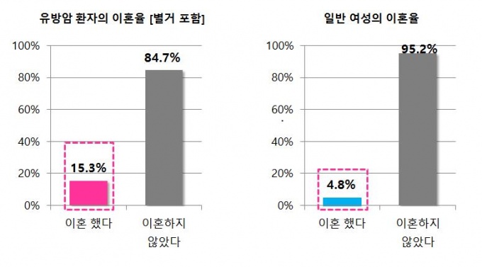 Á¶»ç °á°ú¿¡ µû¸£¸é À¯¹æ¾Ï ȯÀÚ 10¸í Áß 1¸í ÀÌ»ó(15.3%)ÀÌ ‘ÀÌÈ¥, º°°Å µîÀ¸·Î °¡Á· °ü°è°¡ ÇØÃ¼µÆ´Ù’°í ´äÇÑ °ÍÀ¸·Î ³ªÅ¸³µ´Ù. ÀÌ´Â ‘2016 È¥ÀηÀÌÈ¥ Åë°è’¿¡¼ ¹àÈù ±¹³» ÀϹݿ©¼º ÀÌÈ¥À² 4.8%¿Í ºñ±³ÇØ 3¹è °¡·® ³ôÀº ¼öÁØÀÌ´Ù.