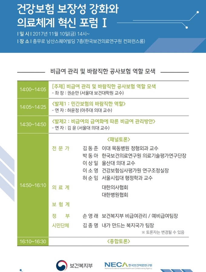Çѱ¹º¸°ÇÀǷῬ±¸¿ø(¿øÀå ÀÌ¿µ¼º)Àº 11¿ù10ÀÏ '°Ç°º¸Çè º¸À强 °È¿Í ÀÇ·áü°è Çõ½Å Á¤Ã¥Æ÷·³'À» °³ÃÖÇÑ´Ù°í 8ÀÏ ¹àÇû´Ù.