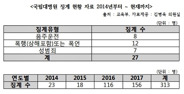 10ÀÏ ±¹È¸ ±³À°¹®ÈüÀ°°ü±¤À§¿øÈ¸ ±èº´¿í ÀÇ¿ø(´õºÒ¾î¹ÎÁÖ´ç)ÀÌ ±³À°ºÎ·ÎºÎÅÍ Á¦Ãâ¹ÞÀº '±¹¸³´ëº´¿ø °âÁ÷±³Á÷¿ø ¹× Àü°øÀÇ Â¡°è ÇöȲ'¿¡ µû¸£¸é 2014³âºÎÅÍ ÇöÀç±îÁö 313¸íÀÌ Â¡°è¸¦ ¹Þ¾ÒÁö¸¸ 254°Ç(81.1%)ÀÌ °ø¹«¿ø¹ý»ó ¹Ì¡°èÀÎ ÈÆ°è·ÁÖÀÇ·°æ°í¿¡ ±×ÃÆ´Ù.