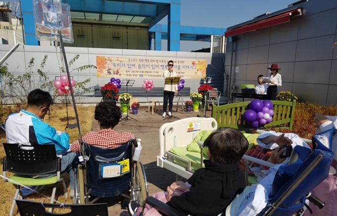 ÀÎõ¼º¸ðº´¿ø ¿ÏÈÀǷẴµ¿ ¿Á»óÁ¤¿ø¿¡¼ ÁøÇàµÈ À̹ø Çà»ç´Â À½¾ÇÄ¡·á»ç¿Í À½¾ÇÄ¡·á °úÁ¤À» °øºÎÇϰí ÀÖ´Â ÇлýµéÀÌ ¾Ç±â¿¬ÁÖ¿Í ³ë·¡ µîÀ» ¼±º¸ÀÌ¸ç ¿ÏÈÀǷẴµ¿¿¡ ÀÔ¿ø ȯÀÚ ¹× °¡Á·µé¿¡°Ô Èñ¸Á°ú ¿ë±â¸¦ ÀüÇß´Ù.