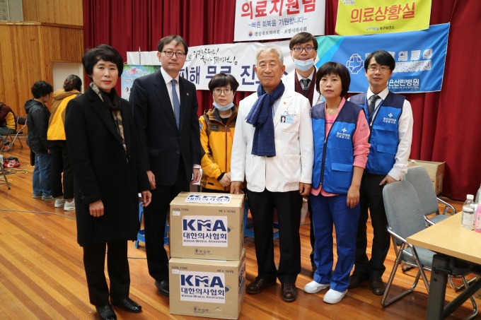 ´ëÇÑÀÇ»çÇùȸ´Â ÁöÁø ¹ß»ý ÀÌÈÄ ¿©ÁøÀÌ °è¼ÓµÇ°í ÀÖ´Â °æºÏ Æ÷Ç×Áö¿ªÀ» ¹æ¹®ÇØ ÀÇ·áÁö¿ø¿¡ ¸¸ÀüÀ» ´ÙÇÏ°Ú´Ù°í ¹àÇû´Ù.