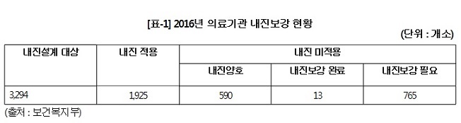 Áö³ÇØ 9·12 °æÁÖ ÁöÁø ÀÌÈÄ º¹ÁöºÎ´Â ±¹ÅäºÎ °ÇÃàÇàÁ¤½Ã½ºÅÛÀ» ÅëÇØ »çȸº¹Áö½Ã¼³ ³»Áø½ÇŸ¦ Àü¼öÁ¶»ç Çß°í, ±× °á°ú ³»Áø¼³°è ´ë»ó½Ã¼³ 1¸¸5,555°³¼Ò Áß 35.5%ÀÎ 5,528°³¼Ò¸¸ ³»Áø ¼º´ÉÀ» È®º¸ÇÑ °ÍÀ¸·Î µå·¯³µ´Ù.