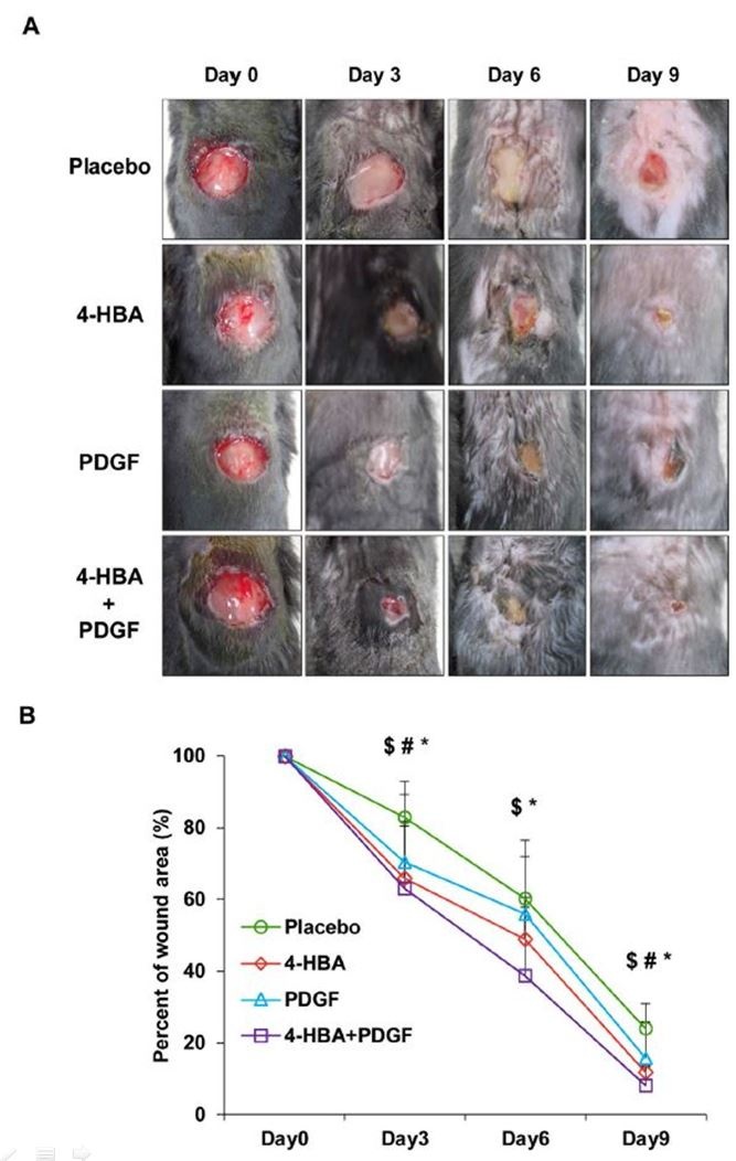 ÀÌ¿¡ µû¶ó ¿¬±¸ÆÀÀº FDA ½ÂÀÎ ¹°ÁúÀÎ PDGF-BB¿Í 4-HBA¸¦ È¥ÇÕÇØ »ç¿ëÇÒ °æ¿ì, »óó¿Í ±Ë¾ç¼º ÁúȯÀÇ Ä¡·áÁ¦ °³¹ßÀÌ °¡´ÉÇÏ´Ù´Â °á·ÐÀ» ³»·È´Ù.