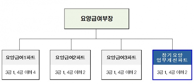 ÇöÀç ¿ä¾ç±Þ¿©ºÎ´Â ¿ä¾ç±Þ¿© 1ÆÄÆ®, 2ÆÄÆ®, 3ÆÄÆ® ÃÑ 23¸íÀÇ Á¤¿øÀ» È®º¸Çϰí ÀÖ´Ù. ¿©±â¿¡ ±âÁ¸ 3±Þ(Â÷Àå) Á÷¿øÀ» Àüȯ±Ù¹«·Î µ¹¸®°í ½Å±Ô 4±Þ(°úÀå) ÀÌÇÏ Á÷¿ø 2¸íÀÇ ÀηÂÀ» Ãæ¿øÇØ 3ÀÎÀ¸·Î ±¸¼ºµÈ Àå±â¿ä¾ç ¾÷¹«°³¼±ÆÀÀ» ½Å¼³Çϰڴٴ °èȹÀÌ´Ù.