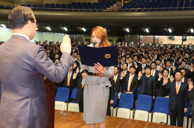 À̳¯ Çà»ç¿¡´Â ¹ÎÀ强 »çÀå ¹× ¿µ¾÷ º»ºÎÀå°ú ¿µ¾÷ÁöÁ¡Àå µî ºÎ¼ ÀÓÁ÷¿ø ÃÑ 580¿© ¸íÀÌ Âü¼®Çß´Ù. ¼±¾ð½Ä¿¡¼± CP Áؼö ¸Þ½ÃÁö¿Í ÀÚÀ²Áؼö ¼¾à¼¸¦ ÀÓÁ÷¿ø ¸ðµÎ°¡ ³¶µ¶Çϸç À±¸®°æ¿µ ½Çõ ÀÇÁö¸¦ ´ÙÁ³´Ù.