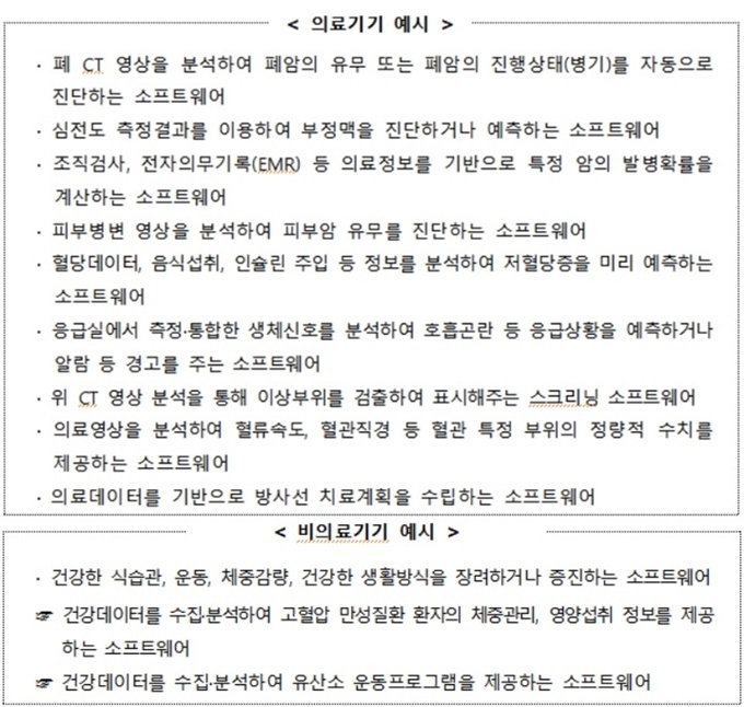 ȯÀÚ Áø·á±â·Ï·ÀǷ῵»ó·»ýüÁ¤º¸·À¯ÀüÁ¤º¸ µî ÀÇ·á¿ë ºòµ¥ÀÌÅÍ¿Í ÀΰøÁö´É(AI) ±â¼úÀÌ Àû¿ëµÈ ¼ÒÇÁÆ®¿þ¾îÀÇ ÀÇ·á±â±â ¿©ºÎ¸¦ ±¸ºÐÇÏ´Â ±âÁØÀÌ ³ª¿Ô´Ù.