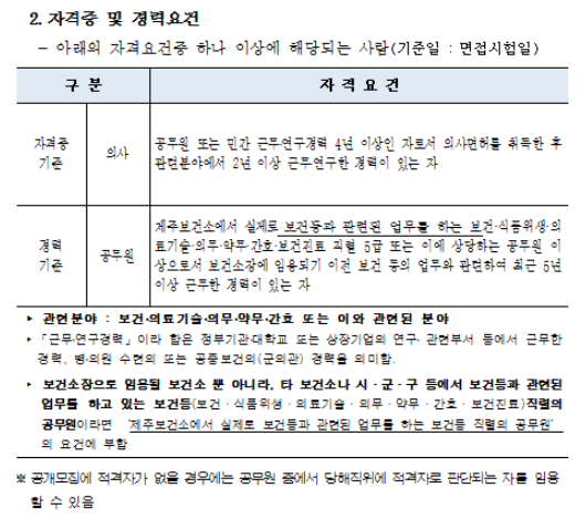 ¿ÃÇØ Á¦Áֽô 2Â÷·Ê¿¡ °ÉÃÄ Á¦ÁÖº¸°Ç¼ÒÀå °³¹æÇü Á÷À§ °ø¸ð¸¦ ½Ç½ÃÇßÀ¸³ª ÀÀ¸ðÀÚ°¡ ¾ø¾î Áö³ 12¿ù4ÀϺÎÅÍ 6ÀϱîÁö ÁøÇàÇß´ø 3Â÷ °ø¸ð¿¡¼´Â ÀÇ»ç¸éÇã ÃëµæÀÚ ¿Ü¿¡µµ º¸°Ç µî°ú °ü·ÃµÈ ¾÷¹« °æ·ÂÀÌ ÀÖ´Â °ø¹«¿øµµ Áö¿ø ÀÚ°Ý ´ë»ó¿¡ Æ÷ÇÔ½ÃÄ×´Ù.