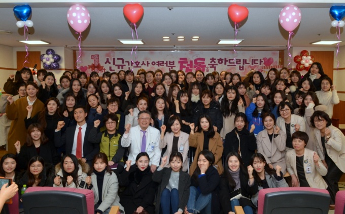 ÇѾç´ëº´¿ø(¿øÀå À̱¤Çö)Àº Áö³ 27ÀÏ º»°ü 3Ãþ °´ç¿¡¼ ÀÔ»çÇØ ù µ¹À» ¸ÂÀÌÇÑ 109¸íÀÇ °£È£»çµéÀ» À§ÇÑ ‘2017 ½Å±Ô °£È£»ç ùµ¹ÀÜÄ¡’ Çà»ç¸¦ °³ÃÖÇß´Ù.