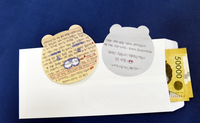 ±âºÎÀÚ´Â Á¤¼ºÀ» ´ãÀº ¼Õ±Û¾¾·Î “(ÀüºÏ´ëº´¿ø¿¡¼ ÁøÇàÇÑ) ÀÓ»ó½ÇÇèÀÇ Âü°¡ºñ·Î ¹Þ°Ô µÈ 25¸¸¿øÀ» ÀüºÎ ±âºÎÇÏ°í ½Í¾î °í°´ÀÇ ¼Ò¸®ÇÔ¿¡ ±âºÎ±ÝÀ» ³Ö°Ô µÆ´Ù”¸ç “½ÇÇè Áß°£ ´Ù¸®¸¦ ´ÙÃÄ µ· ¾×¼ö°¡ Àû´Ù”´Â ºÎ¿¬ »ç¿¬µµ ÀüÇß´Ù.