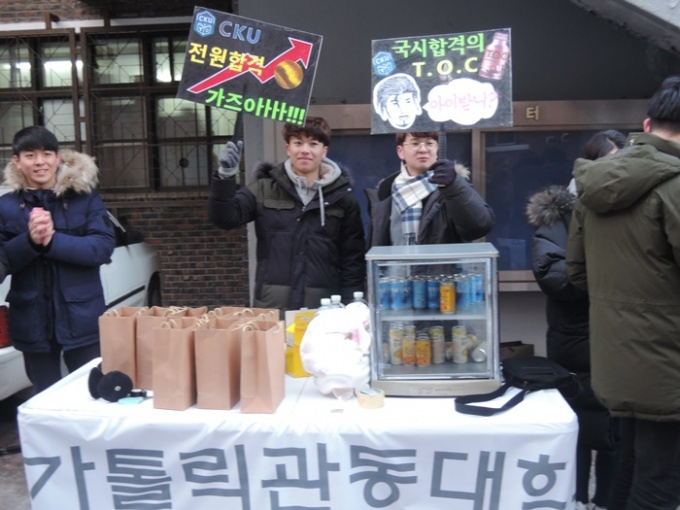 ¿ÀÀü 8½Ã°æ ½ÃÇè ½Ã°£ÀÌ °¡±î¿öÁöÀÚ ÈĹèµéÀÇ ÀÀ¿ø ¸ñ¼Ò¸®µµ ´õ¿í Ä¿Á³´Ù. ÈĹèµéÀº ¼±¹èµéÀ» À§ÇÑ ÀÀ¿øÀÇ ÇÑ ¸¶µð¿Í ÇÔ²² Á¤¼º½º·´°Ô Æ÷ÀåÇÑ °£½Ä°ú À½·á µîÀ» Á¦°øÇß´Ù. ´Üü ¹ö½º¿¡¼ ³»¸®´Â ¼öÇè»ýµéÀÇ ¹ß°ÉÀ½µµ »¡¶óÁ³´Ù.