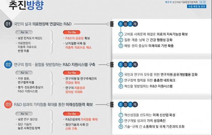 2Â÷ °èȹ¾ÈÀÇ ÇÙ½ÉÀº 'º¸°ÇÀÇ·á±â¼ú Çõ½ÅÀ¸·Î ±¹¹Î ¸ðµÎ°¡ °Ç°ÇÑ ³»ÀÏ'ÀÌ´Ù. À̸¦ À§ÇØ R&D°¡ ±¹¹Î »î°ú ÀÇ·áÇöÀåÀ» ¿¬°áÇÏ´Â °¡±³·Î¼ ±â´ÉÇϸç, ¹Ì·¡ ¼ºÀ嵿·ÂÀ¸·Î ÀÏÀÚ¸® âÃ⠵ Ȱ¿ëµÈ´Ù.
