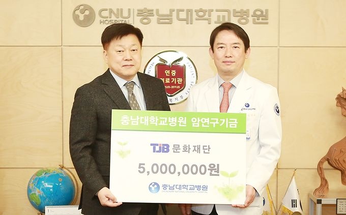 Ãæ³²´ëÇб³º´¿ø(¿øÀå ¼Û¹ÎÈ£)Àº 29ÀÏ TJB ¹®ÈÀç´Ü(ÀÌ»çÀå Á¤º¸¿¬)À¸·ÎºÎÅÍ ¾Ï¿¬±¸ ÁöÁ¤±âŹ±Ý 500¸¸¿øÀ» ±âºÎ ¹Þ¾Ò´Ù°í ¹àÇû´Ù.