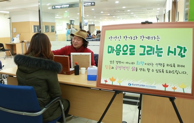 Ãæ³²´ëÇб³º´¿ø ´ëÀüÁö¿ª¾Ï¼¾ÅÍ(¼ÒÀå ±èÁö¿¬)´Â ÃÖ±Ù ¼³ ¸íÀýÀ» ¾ÕµÎ°í ¾ÏȯÀÚ ¹× º¸È£ÀÚ¿¡°Ô ÄèÀ¯ÀÇ Èñ¸Á°ú À§·ÎÀÇ ¸Þ½ÃÁö¸¦ Àü´ÞÇϰíÀÚ ¹®ÈÇà»ç¸¦ ÁøÇàÇß´Ù.