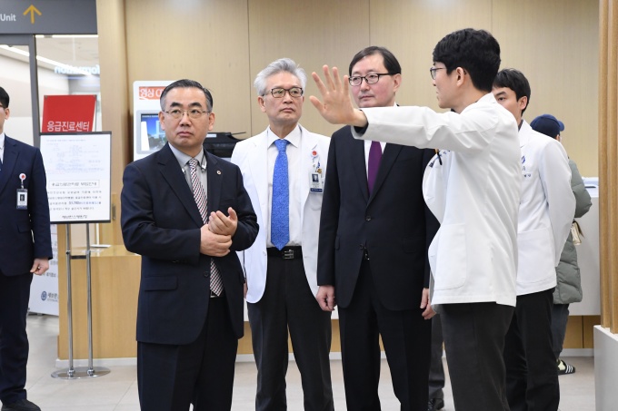 ¸¶Áö¸·À¸·Î °í´ë¾È¾Ïº´¿ø ÀÀ±Þ½ÇÀ» ¹æ¹®ÇÑ Ãß È¸ÀåÀº ÀÀ±Þ½Ç ´çÁ÷Àǵ鿡°Ô “³ë°í¿¡ ±íÀÌ °¨»çÇÑ´Ù. ¸íÀý ¿¬ÈޱⰣµ¿¾È ÀÀ±ÞȯÀÚ ´ëó¿¡ ÃÖ¼±À» ´ÙÇØÁֱ⠹ٶõ´Ù. ÀÀ±Þ½Ç Àη°ú ½Ã¼³ÀÌ ÅξøÀÌ ºÎÁ·ÇÏ°í ¼ö°¡µµ ³·´Ù. ¹Ýµå½Ã °³¼±µÇµµ·Ï Á¤ºÎ¿¡ Àû±Ø °ÇÀÇÇϰí Èû¾²°Ú´Ù”°í °Ý·ÁÇß´Ù.
