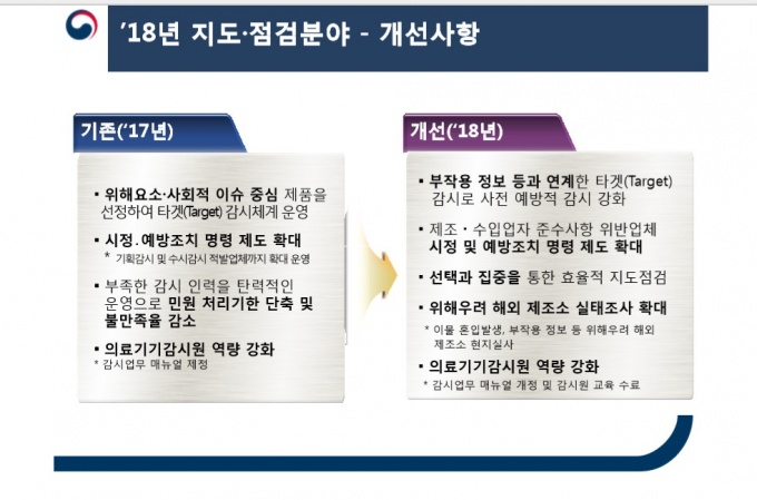 ½Ä¾àó ÃøÀº “ºÎÀÛ¿ë Á¤º¸¸¦ Áß½ÉÀ¸·Î Ÿ°Ù °¨½Ã¸¦ ½Ç½ÃÇϰí À§Çذ¡ ¿ì·ÁµÇ´Â ÇØ¿Ü Á¦Á¶¼Ò´Â ÇöÁö½Ç»ç¿¡ µé¾î°¥ °Í”À̶ó¸ç “¹®Á¦ ¹ß»ý ¿ì·Áǰ¸ñ Áß½ÉÀ¸·Î ºÐ±âº° ¼ö°Å°Ë»çµµ ½Ç½ÃÇϰڴٔ°í ¸»Çß´Ù. |