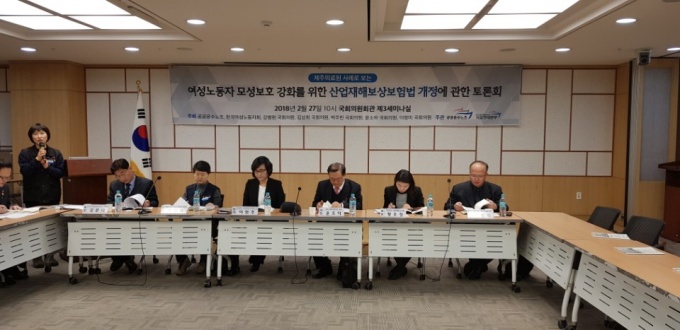 27ÀÏ ±¹È¸ÀÇ¿øÈ¸°ü Á¦3°£´ãȸ½Ç¿¡¼ ¿¸° ‘Á¦ÁÖÀÇ·á¿ø »ç·Ê·Î º¸´Â ¿©¼º³ëµ¿ÀÚ ¸ð¼ºº¸È£ °È¸¦ À§ÇÑ »ê¾÷ÀçÇØº¸»óº¸Çè¹ý °³Á¤¿¡ °üÇÑ Åä·Ðȸ’¿¡¼´Â ±¹³» ¿©¼º ³ëµ¿ÀÚÀÇ ¿¾ÇÇÑ ±Ù¹« ȯ°æ°ú À̸¦ °³¼±Çϱâ À§ÇÑ ¹ýÀû ±â¹Ý ¸¶·ÃÀÌ ÇÊ¿äÇÏ´Ù´Â ³íÀǰ¡ ÀÌ·ïÁ³´Ù.