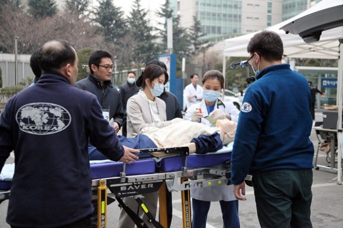 °Ç±¹´ëÇб³º´¿ø(º´¿øÀå Ȳ´ë¿ë)Àº Áö³ 27ÀÏ ÀÀ±ÞÀÇ·á¼¾ÅÍ ¾Õ¿¡¼ Àç³»óȲ ´ëÀÀ·Â °È¸¦ À§ÇØ ¸ðÀÇÈÆ·ÃÀ» ½Ç½ÃÇß´Ù.