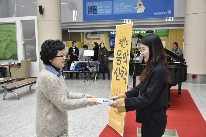 ÃæºÏ´ëÇб³º´¿øÀº ÃÖ±Ù 1Ãþ ·Îºñ¿¡¼ 'Á¤¿ÀÀÇ À½¾Ç »êÃ¥'°ú °¡¼ö Ȳġ¿ÀÇ 'CD ³ª´® Çà»ç'¸¦ ÁøÇàÇß´Ù.