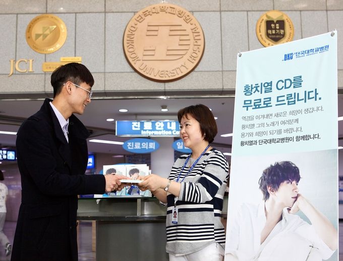 ÀÌ ´Üü´Â Èûµé°Ô º´¸¶¿Í ½Î¿ì°í Àִ ȯÀÚ¿Í º¸È£ÀÚ, ±×¸®°í À̵éÀ» Ä¡·áÇÏ´Â ±³Á÷¿øµé¿¡°Ô Èñ¸ÁÀÇ ¸Þ½ÃÁö¸¦ Àü´ÞÇϱâ À§ÇØ ´Ü±¹´ëº´¿ø Ãø¿¡ ¾Ù¹üCD 3000ÀåÀ» ±âºÎÇß´Ù.