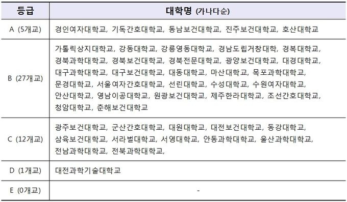 ´ëÇк° Æò°¡°á°ú¸¦ »ìÆìº¸¸é ´ëÀü°úÇбâ¼ú´ëÇб³°¡ Dµî±ÞÀ» ¹Þ¾Æ °£È£Çаú Á¤¿ø 50%¸¦ °¨ÃàÇØ¾ß ÇÑ´Ù.