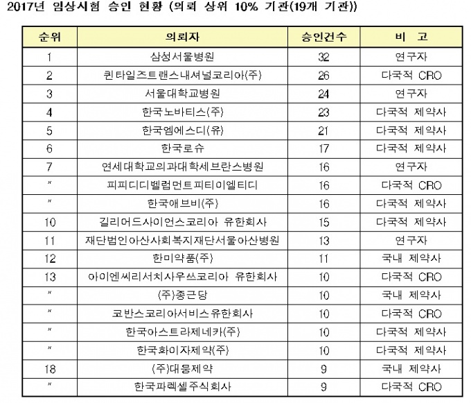 Áö³ÇØ ±¹³»¿¡¼ ÀÓ»ó½ÃÇè ½ÂÀÎÀ» °¡Àå ¸¹ÀÌ ¹ÞÀº ±â°üÀº '»ï¼º¼¿ïº´¿ø'À̾ú´Ù. Á¦¾à»çº°·Î´Â ³ë¹ÙƼ½º(¿ÜÀÚ»ç)¿Í Çѹ̾àǰ(±¹³»»ç)ÀÌ ²ÅÇû´Ù.